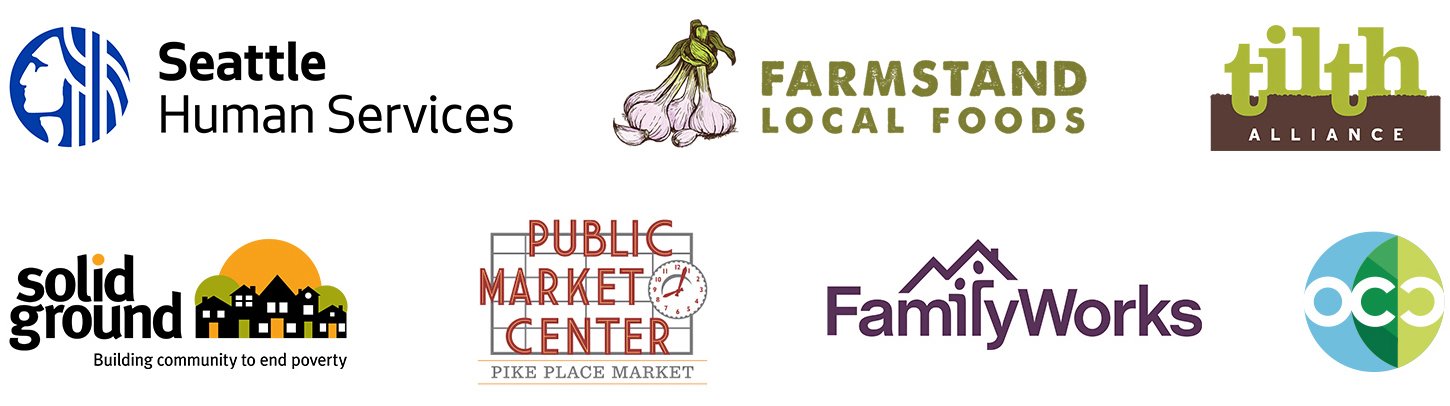 We collaborate with Tilth Alliance, Farmstand Local Foods, Pike Place Market, and FamilyWorks to provide weekly bags of seasonal produce for preschool families. Our partners prioritize sourcing from BIPOC, immigrant, refugee, and women farmers, and they deliver more than 30,000 family food bags each year.