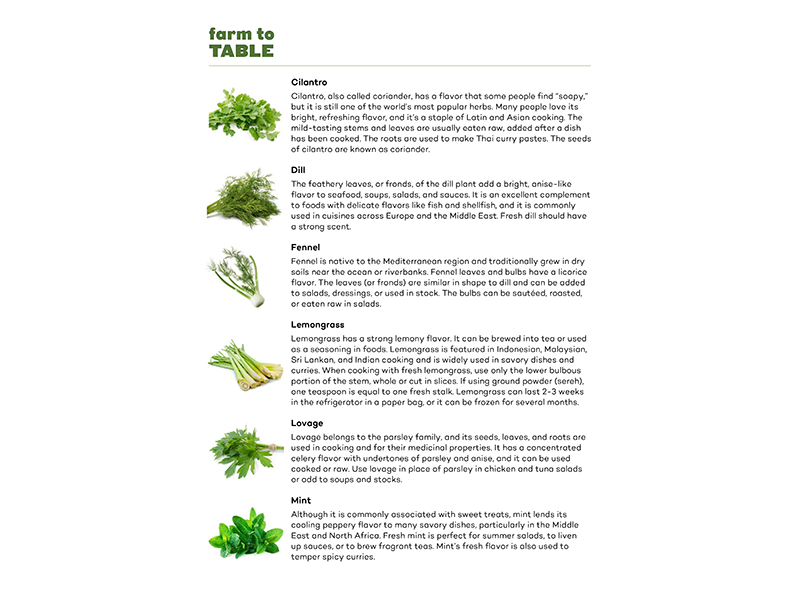 This guide includes pictures and descriptions for many of the herbs available through the Farm to Preschool marketplace.